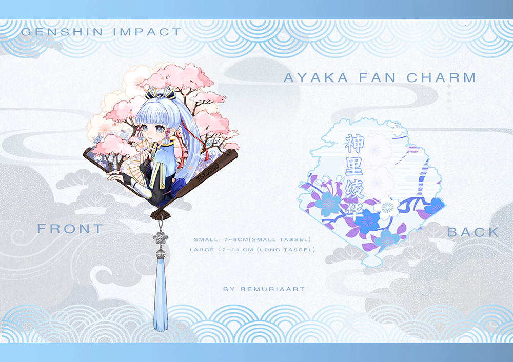 Classy acrylic charms of fan faves Ayaka, Yae Miko, and Shogun with an alternate oriental twist. Each charm comes with an actual tassle that is much bigger than the concept art. Size is 14cm (not including the tassels and strings)