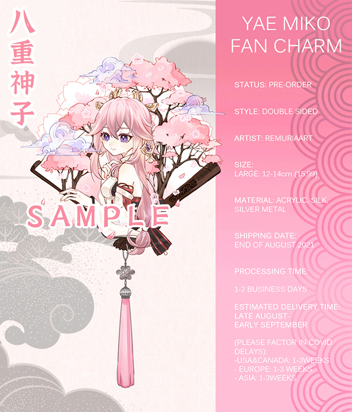 Classy acrylic charms of fan faves Ayaka, Yae Miko, and Shogun with an alternate oriental twist. Each charm comes with an actual tassle that is much bigger than the concept art. Size is 14cm (not including the tassels and strings)